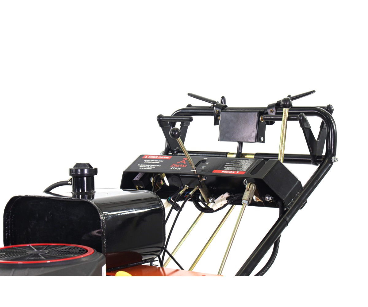 Газонокосилка ZimAni ZTR36 - это самоходная бензиновая модель с нулевым разворотом и шириной кошения 90 сантиметров. Газонокосилка оснащена бензиновым двигателем Loncin V-Twin мощностью 20 лошадиных сил, два гидростатических привода (на каждое колесо свой) позволяют косить склоны или территории со сложным рельефом. Газонокосилка справляется с любым типом травы любой высоты, и даже молодой древесной порослью диаметром до 10 см. Косилка оснащена двумя лезвиями, которые вращаются со скоростью 5000 оборотов в минуту, работая как топоры, что позволяет устройству измельчать практически всё. Может использоваться в ландшафтном дизайне на больших участках, в охотничьих клубах, парках и т.п.