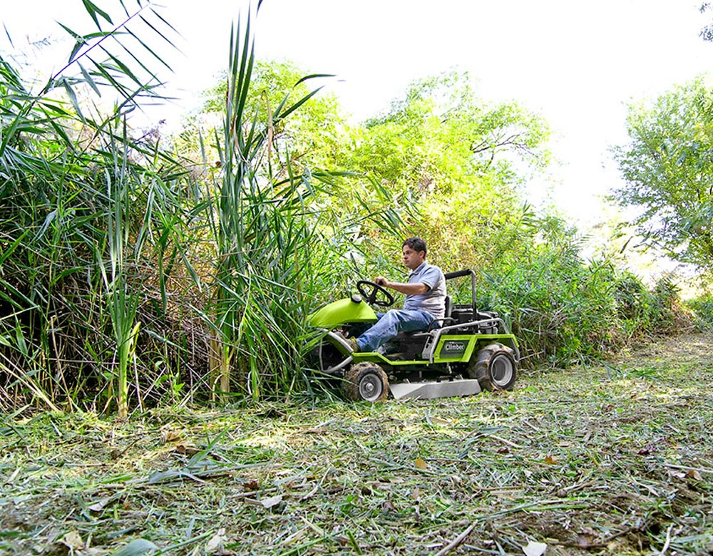 Садовый трактор Grillo Climber 9.22 отлично подходит для стрижки газонов на территориях со сложным рельефом и для ухода за участками, заросшими сорняками и бурьяном. Тяжелый нож с рабочей поверхностью 91 см способен косить мелкий подлесок и не боится столкновений с камнями.