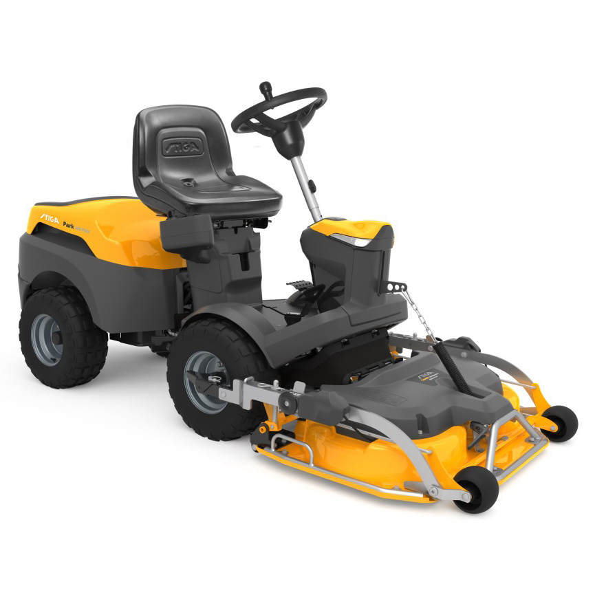 Садовый райдер Stiga Park 345 PWX оснащен японским двигателем Honda GCV 530 и уникальной системой шарнирного рулевого управления. Такая конструкция обеспечивает удобство маневрирования между деревьями, клумбами и другими препятствиями в парке. Система рулевого управления повышает маневренность райдера, а при полном развороте остается минимальный участок нескошенной травы. Двигатель расположен сзади, что не только снижает уровень шума, но и улучшает качество воздуха вокруг оператора.