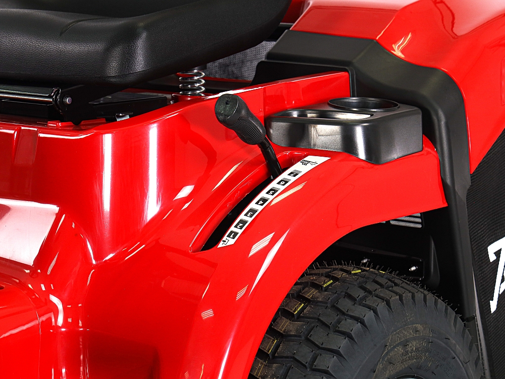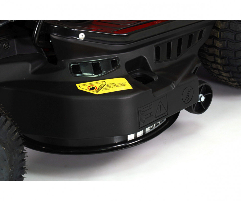 Одной из ключевых особенностей трактора является мощный двигатель, позволяющий обрабатывать большие площади газонов. Благодаря широкой деке скорость обработки территории увеличивается почти в два раза. Электрический стартер обеспечивает легкий запуск двигателя.