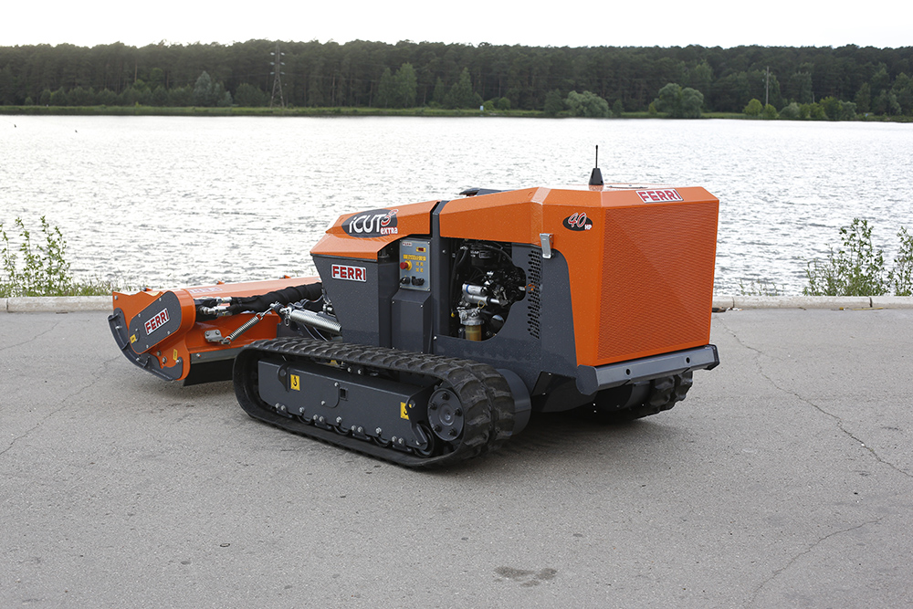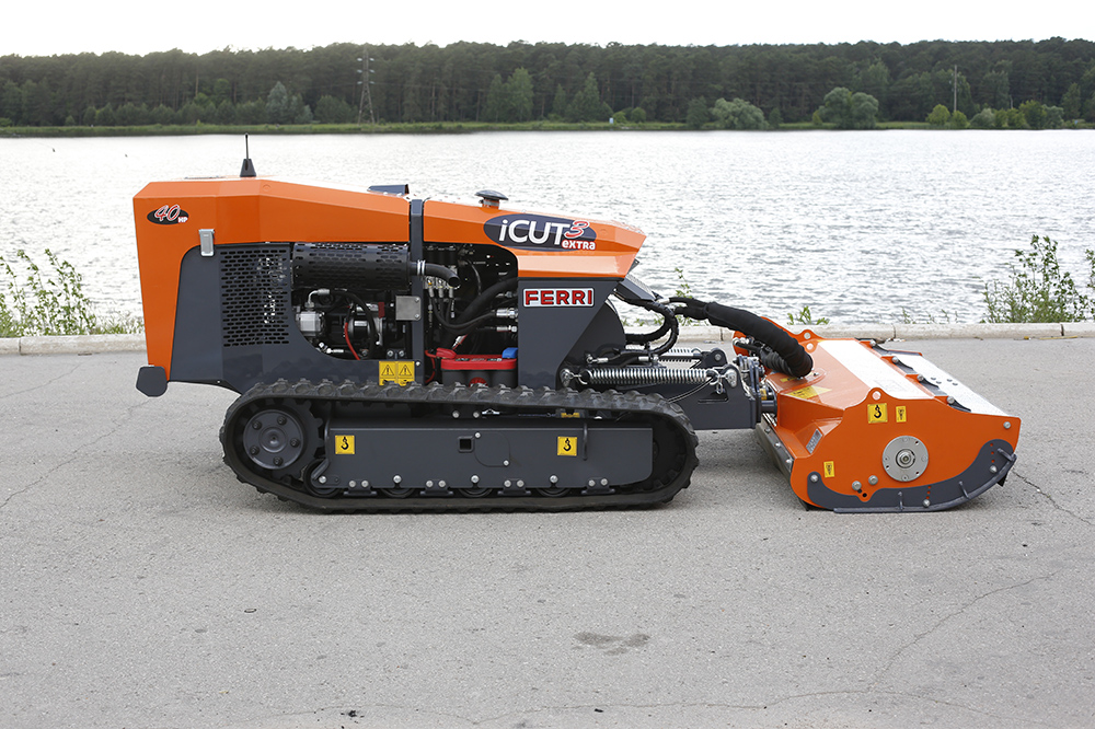 Гусеницы с глубоким протектором предотвращают сползание по склону. А для сложных условий опционально существует 4 типа гусениц, в том числе с металлическими грунтозацепами и шипами. Дистанция управления в 150 метров предусматривает полную безопасность оператора во время работы, при этом косилка всегда находится в поле его зрения и под его контролем.